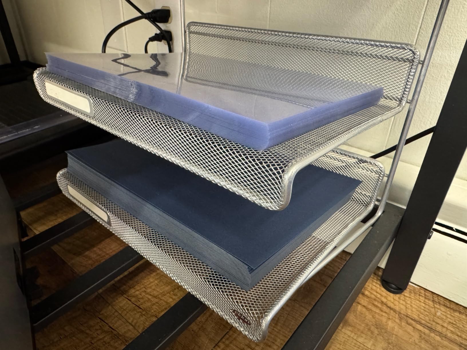 During these times when my husband and I are having difficulty finding face shields large enough to wear to work to accommodate our bulky dental eyewear (loupes), we've had to resort to making our own shields. These presentation covers are durable and clear enough to serve as great shields for our line of work.